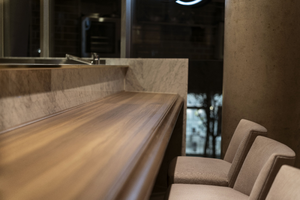 特にファサードの大理石の腰壁部分は施工が難しい箇所ではございましたが、工程の工夫をすることで品質を保ちながらイメージ通りの出来栄えで高級感を損なうことなく完成させることができました。