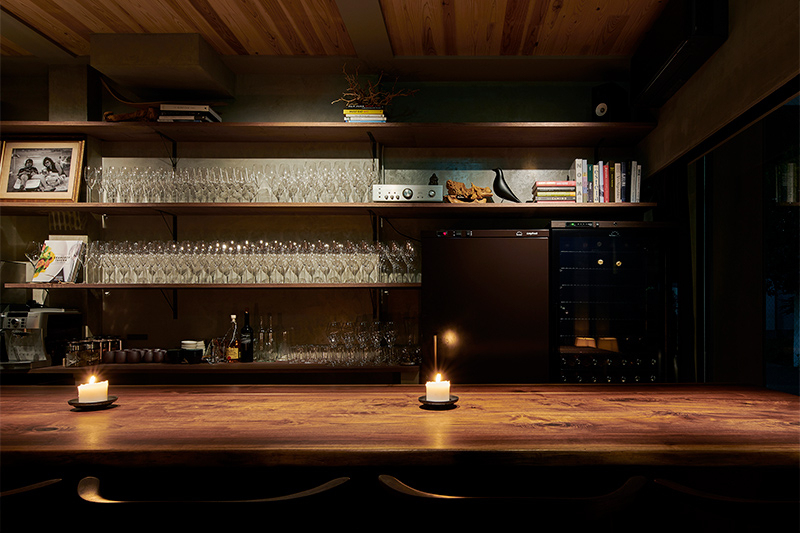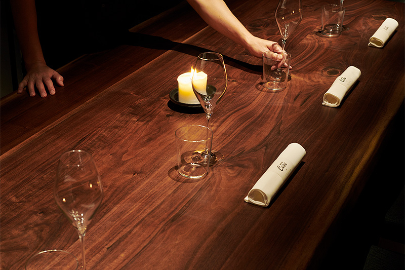 すべてのゲストが共にする、ウォールナットのカウンター。温かみや上質感、つながりを感じられる空間へ。