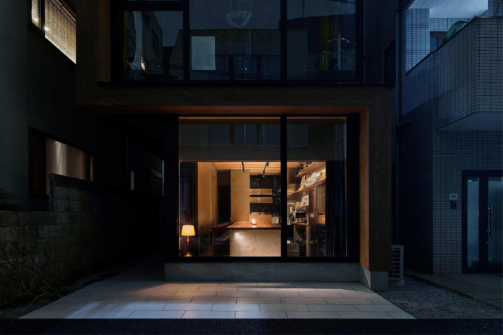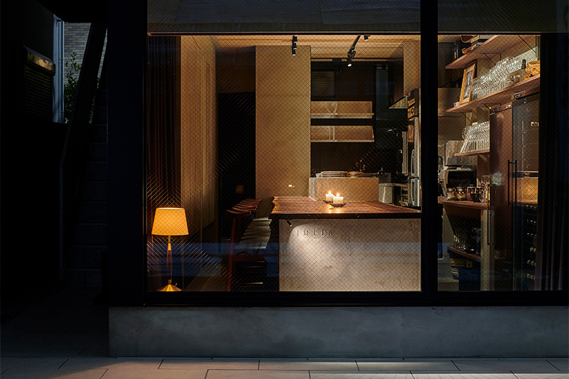 通りすがりにもハッと目につくようトリミングしたファサードで、大人の隠れ家のような空間に。