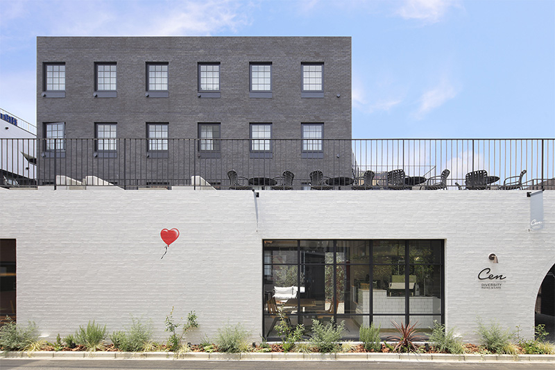 44室のプライベートルームと街の喧騒とは遮断されたオープンテラス付きのカフェを備え、全ての人が、自分らしく過ごせる、新大久保にあるHOTEL CEN(ホテル セン)。
