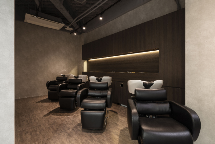 シャンプースペースは、リラックスできるようダークトーンでまとめています。