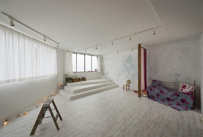 古い建物を丸ごと1棟、フォトスタジオにリノベーションしました。建物全体はパリのアパルトマンのようなヴィンテージテイストの空間で、フロア毎に異なる表情の空間にしています。