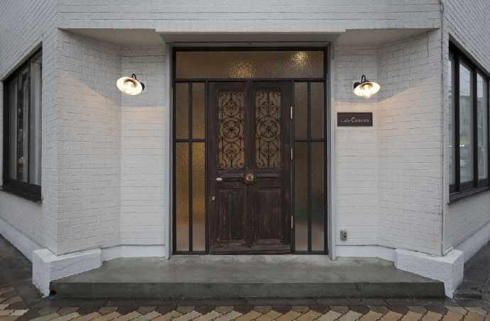繊細で、どこか懐かしい雰囲気を醸し出す白いタイル壁に、パリのアパルトマンをイメージしたアンティーク調の扉が心地よいコントラストを創り出しています。しっかりと世界観を持って作り込んだエントランスは、ロケーションとしても最適です。