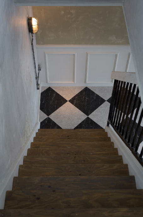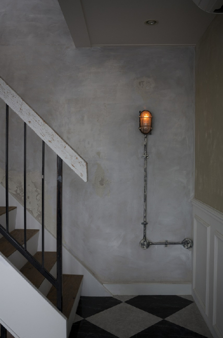 階段の照明には、ヴィンテージテイストのライトを採用。さり気なく空間を演出するデザインポイントとなっています。あらゆるポイントがロケーションとして活用できるよう、建物内の全てにデザインを落とし込みました。