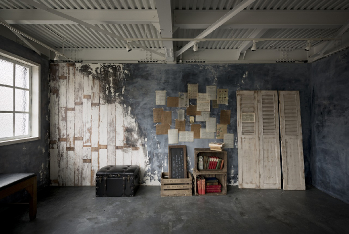 エイジング加工を施した空間に、ヴィンテージテイストの小物を合わせた無骨な空間デザイン。ディテールまでエイジング加工のバランスを計算して作り込まれたダークな世界観は、実際に古い建物に入り込んだような錯覚を覚える印象的な仕上がり。
