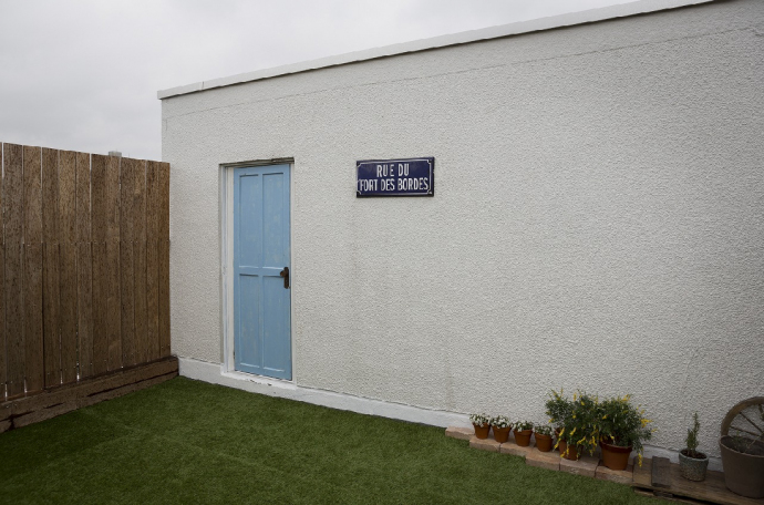 自然光に映える人工芝を床面に使用することで、室内の雰囲気とはまた違った明るく開放的なロケーションになっています。