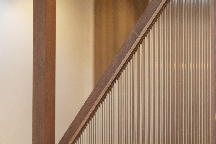 パーテーションの波ガラスは視線を遮り、リラックスできる空間にしました。