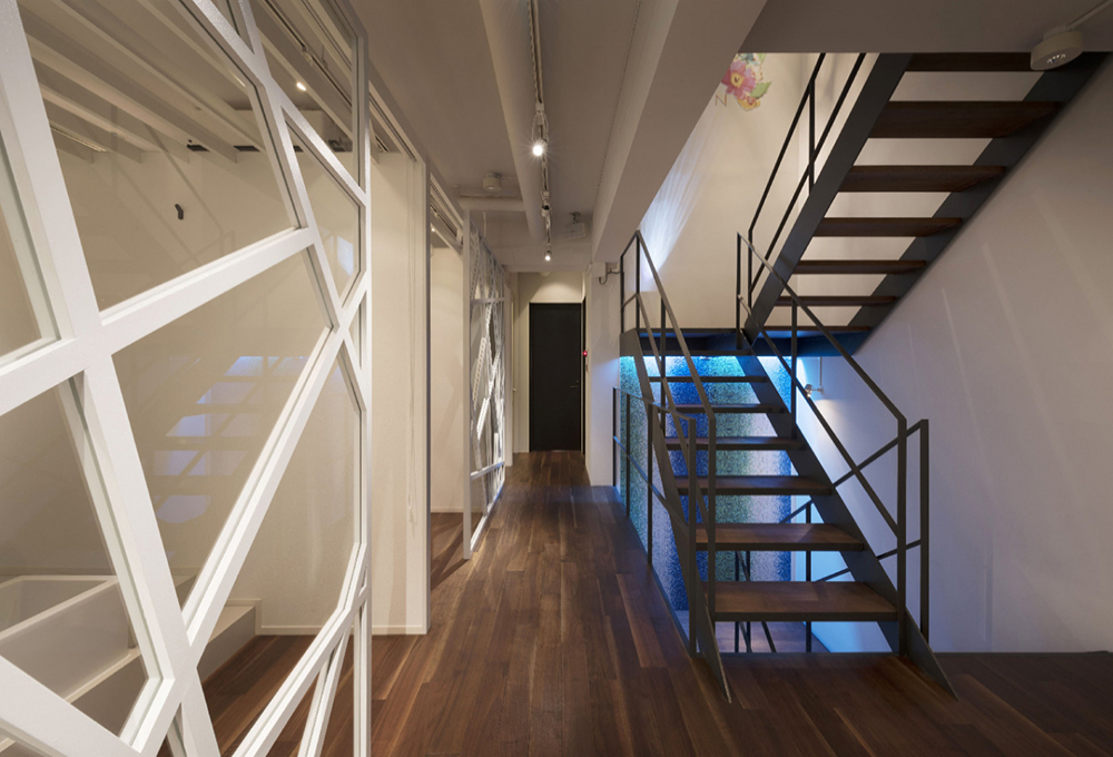 落ち着いていて上品な大人の癒やし空間を表現するため、エントランスには水をイメージしたパネルと青のライトアップが印象的なデザインを取り入れました。白を基調とした洗練された空間の中に、イラストや流線的なモチーフを取り入れ、整然とし過ぎない「大人の癒やし空間」を実現しました。