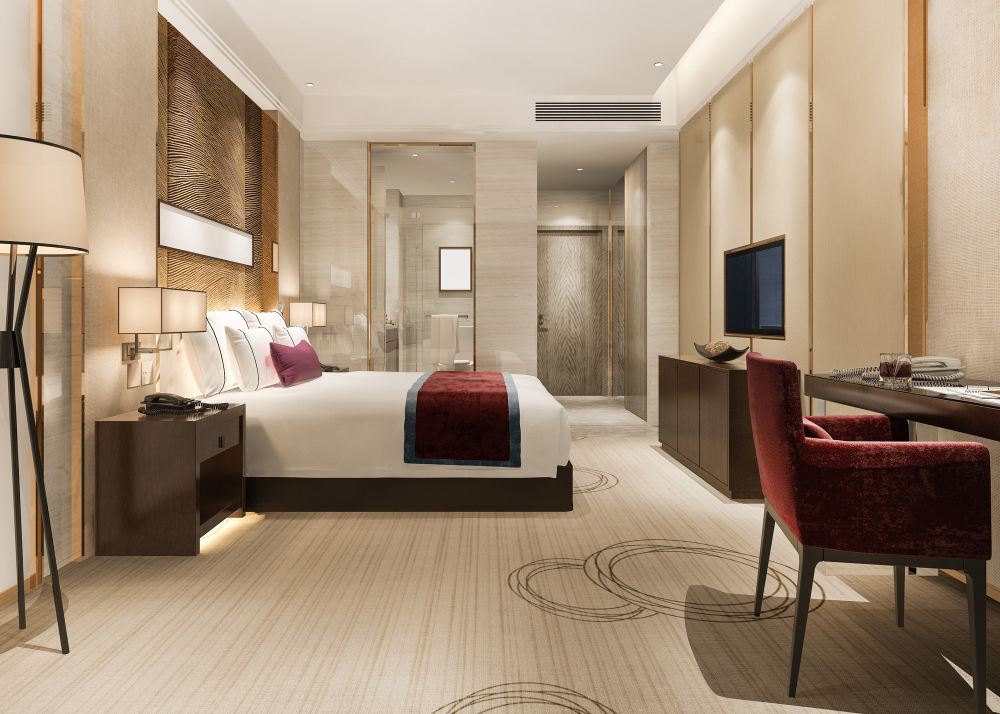 ビジネスホテルの内装デザインと「リゾートホテルや高級旅館との違い」について、テイストやフロアのレイアウトなどが考慮されます。主にビジネス関連の利用を前提としており、その内装デザインは落ち着いた雰囲気を持ち、一般的にはナチュラルやモダンなスタイルが採用されます。また、宿泊室内には必要な設備や機器が設置されることが一般的です。
