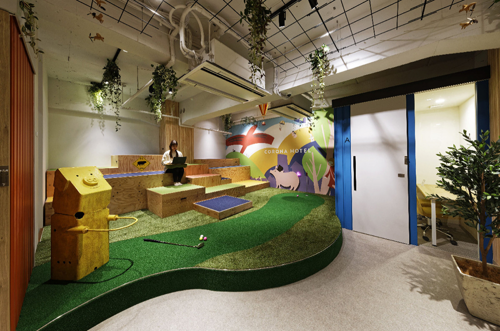 宿泊者が休息をとるだけでなく、働き、学び、美味しい食事を朝昼晩と楽しむことが可能です。また、ホテルオーナー様のコレクションのたくさんの豚達も観覧することができます。大阪ならではの遊び心をデザインに盛り込んでおり、訪れた方がゆったりと長く滞在でき、満足し、必ず「また来たい」と思っていただける施設です。